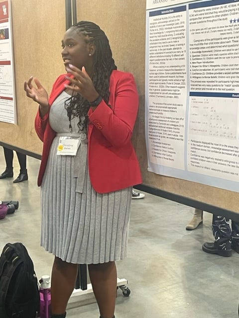 The regular two days of the conference were also terrific and I attended many sessions on topics both in and out of my research wheelhouse. I brought back several things to integrate immediately into my graduate developmental psych course this semester. The poster sessions were also fun, well-attended, and in a room in the Pasadena Convention center that had ample space both at the posters and sitting areas outside of them. My student Christina, of course, did a fantastic job at our posters presenting our first passes at our work on intellectual humility and conspiracy beliefs. Several of the scholars that she was most hoping would come to the posters came almost immediately to them and the provided excellent feedback to her and to me as well. We also caught up with my former student Lani Girgis (my co-author on the two papers that were published during my sabbatical) and had a lovely meal together with her. My next conference is for the International Association for the Study of Child Language in Prague in July! Expect posts about that! Also, we are just about to dive into data analysis for our big IH-CB studies and Christina’s dissertation work that we have been collecting data on for the past several months, so lots more Psychologue to come on that as well! More pics!