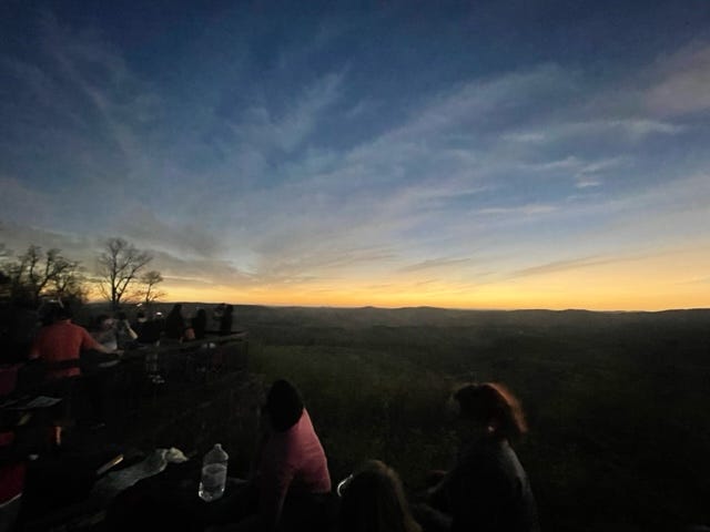 Then, of course, last Monday was the solar eclipse, and Fayetteville was just a short distance from the path of totality. We had an unexpected guest for the event as family friend Bruce, who was traveling from California expecting to view the eclipse in Austin, called us at the day before and asked if he could come visit us as the weather forecast for Austin was pretty awful at the time. Of course we said yes, and the three of us headed about 100 miles east into the Ozarks to find a viewing spot. Lots of others did the same so the usual empty country roads had more traffic on them as usual but we managed to stay away from the worst traffic jams on the interstates. We ended up viewing the eclipse at a large rest area and scenic overlook on Arkansas Highway 7 which is a beautiful road. We were joined by a couple hundred other eclipsians and had perfectly clear skies for the totality which lasted over 3 minutes at that spot. It was beautiful and awe inspiring, easily worth the time in the car, and it was great to see Bruce, whom we had last seen on our trip to Santa Cruz in October.